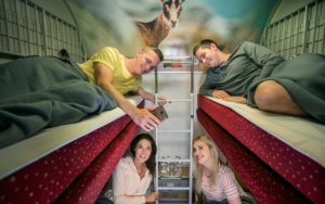 Slaapplaats: 2 of 3 plaatsen per coupé, inclusief welkomstdrankje, deken, laken, hoofdkussen, was en toiletruimte en ontbijt