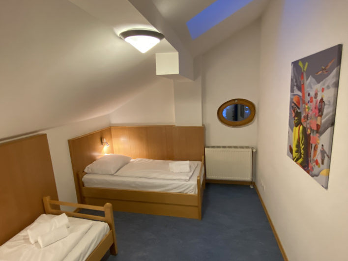 - Kamer 9: 1 slaapkamer met 2 persoonsbed + stapelbed. 1 slaapkamer met 2 x 1 persoonsbed. Badkamer met 2 douches en 2 wastafels. Apart toilet. Beide slaapkamers kunnen apart op slot. (max 6 personen)