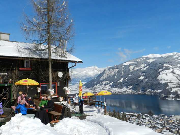 Ga lekker Kaiserschmarrn (kleine stukken pannenkoek) bij de Pinzgauer Hütte op de Schmittenhöhe van Zell am See. Na het eten ga je achter een sneeuwscooter hangen en wordt je teruggebracht naar de piste. Een ander hutje wat de moeite waard is is de Ebenbergalm. Dit kleine hutje net boven Zell am See liggend kan je ook lopend aandoen.